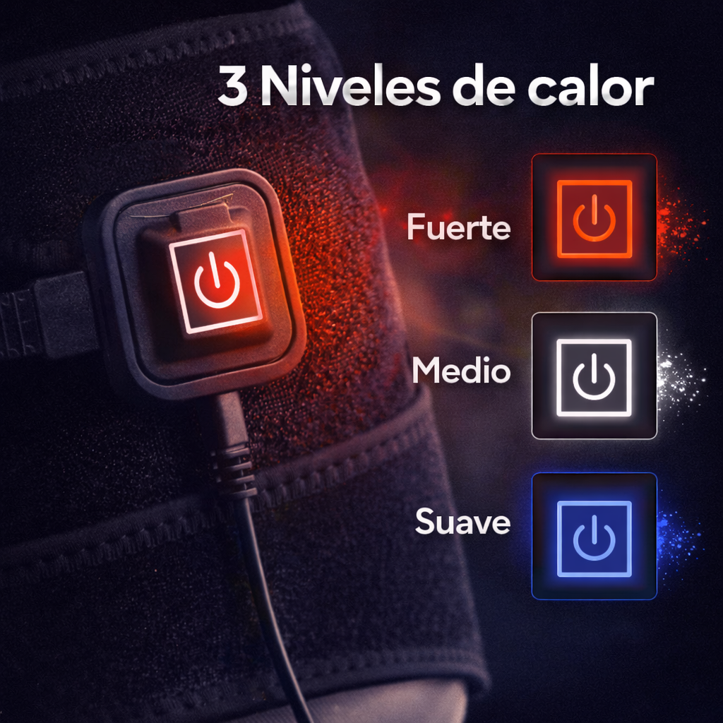 Gracias a su sistema de calor terapéutico, esta rodillera ayuda a relajar los músculos, mejorar la circulación sanguínea y disminuir la sensación de dolor y rigidez, permitiéndote moverte con mayor libertad y confort.