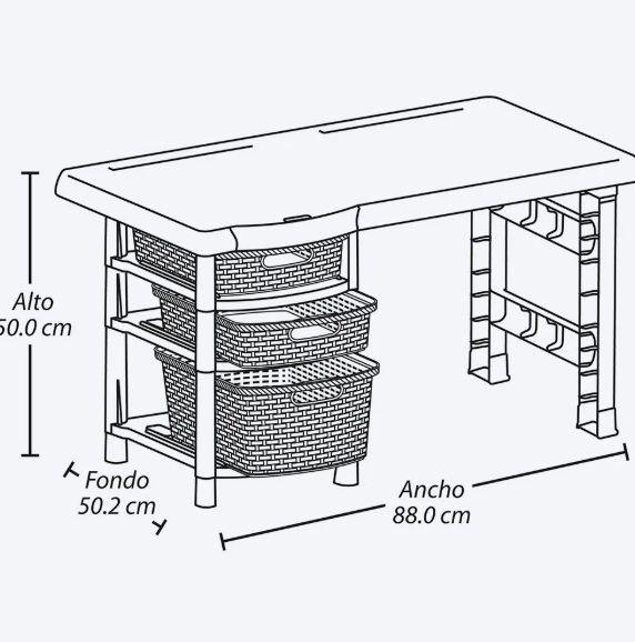 Cada gaveta soporta aproximadamente 5 kg, ideal para ropa, documentos o utensilios.