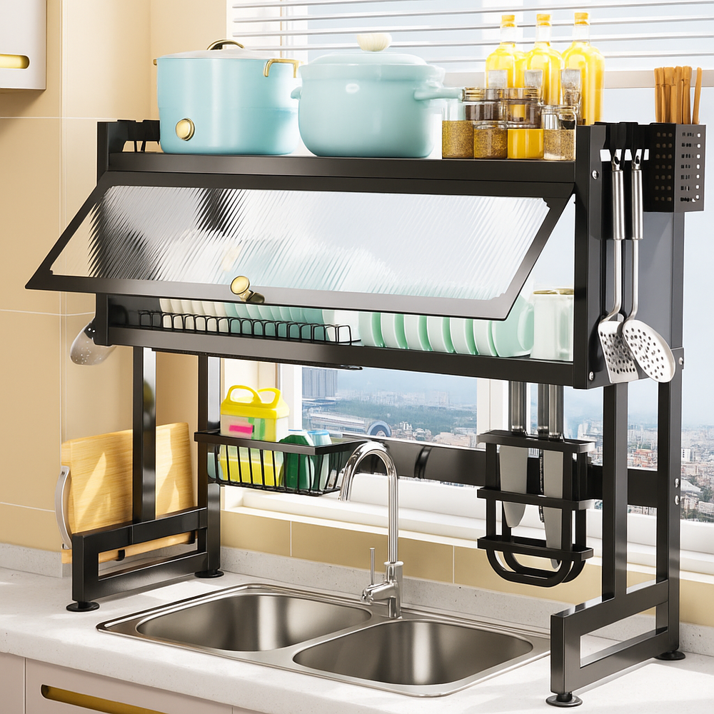 Organizador Escurridor de Platos Multifuncional - Estante de Cocina Todo en Uno