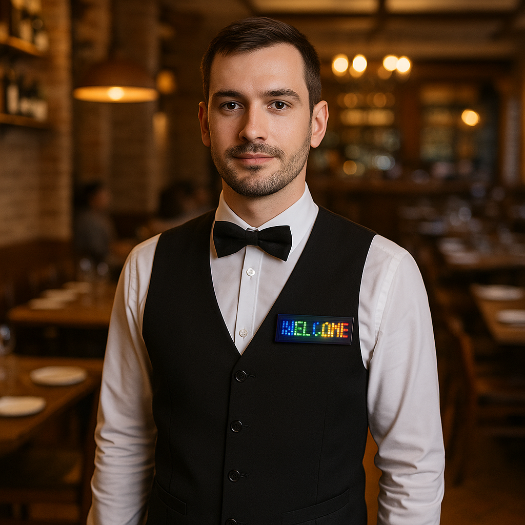 En mi restaurante usamos estos letreros para identificar al personal y ha sido un éxito total. Los clientes notan el detalle y siempre preguntan dónde los compramos. Son livianos, la batería dura toda la jornada y se programan facilísimo desde el celular. Sin duda, un toque moderno y funcional que mejora la presentación del negocio.