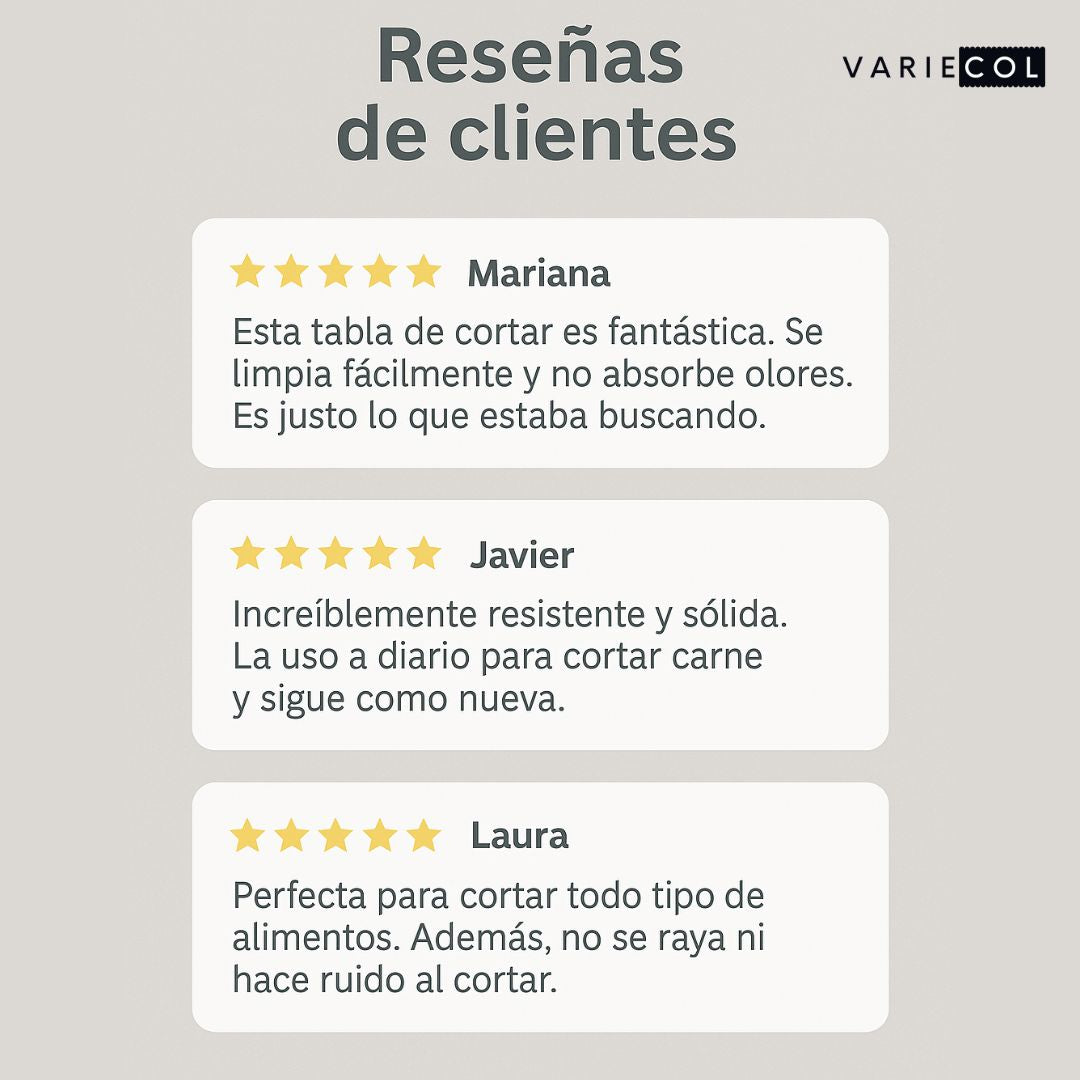 No absorbe humedad ni olores, más higiénica que las tablas comunes.