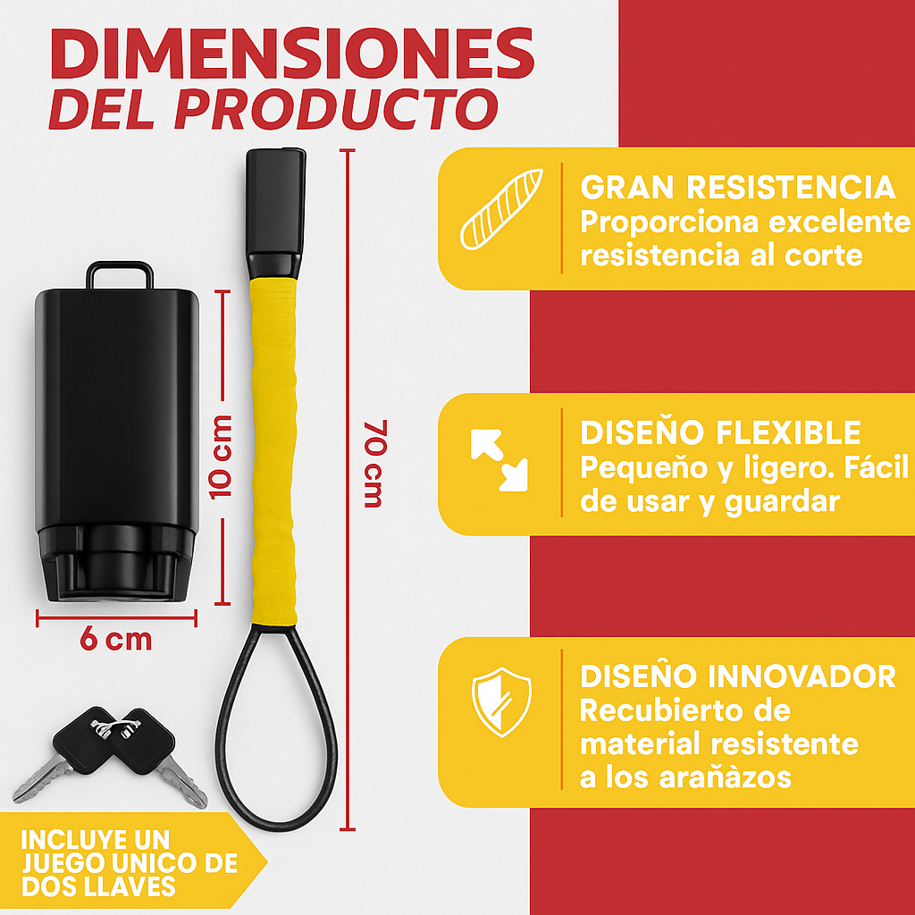 Protege tu vehículo en segundos gracias a su diseño de acero reforzado y sistema de bloqueo confiable que mantiene tu carro seguro en todo momento.