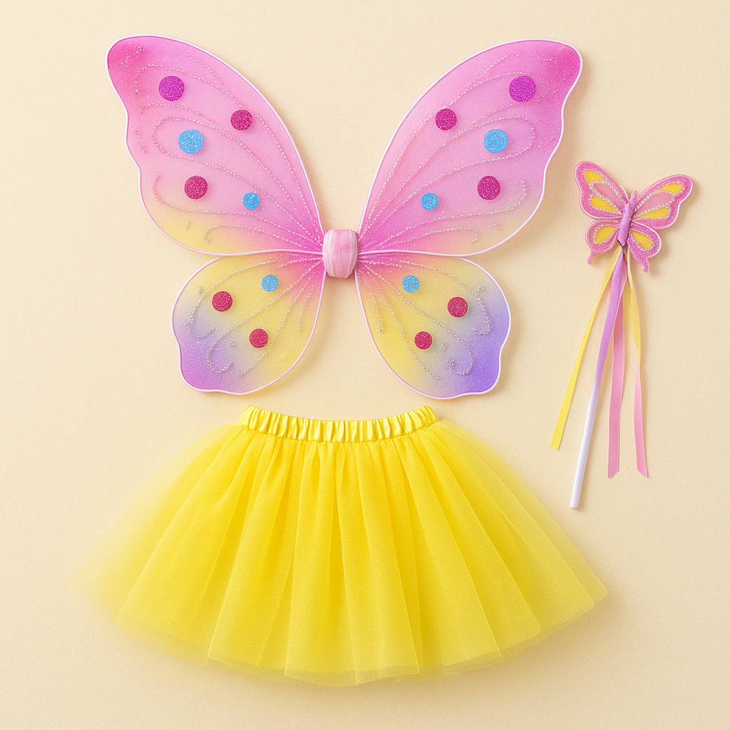 Había visto varios sets parecidos, pero ninguno se veía tan bonito como este. Cuando llegó quedé encantada, las alas tienen un color precioso y la tela del tutú es suave, no se siente plástica ni áspera. Además, el servicio fue excelente, llegó a tiempo y pude pagar cuando me lo entregaron.