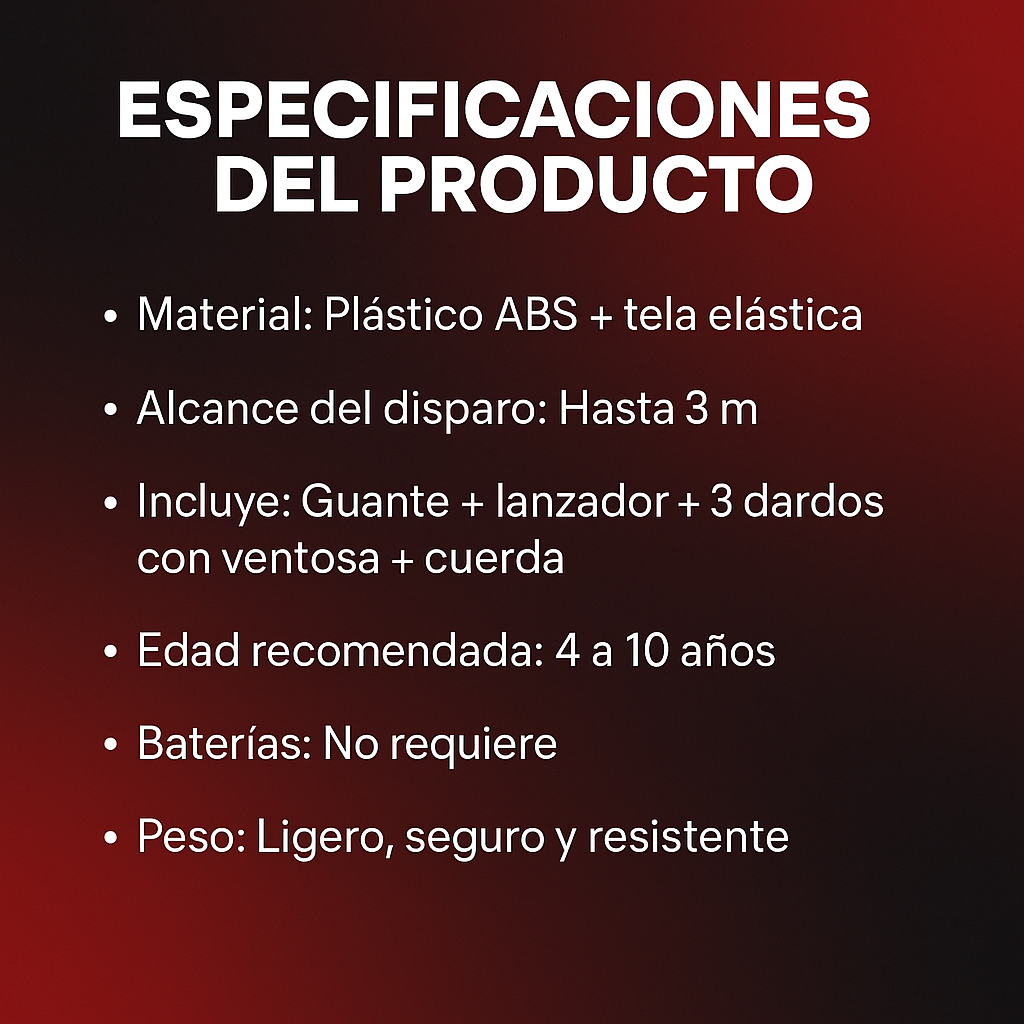 Guante + lanzador + 3 dardos con ventosa + cuerda