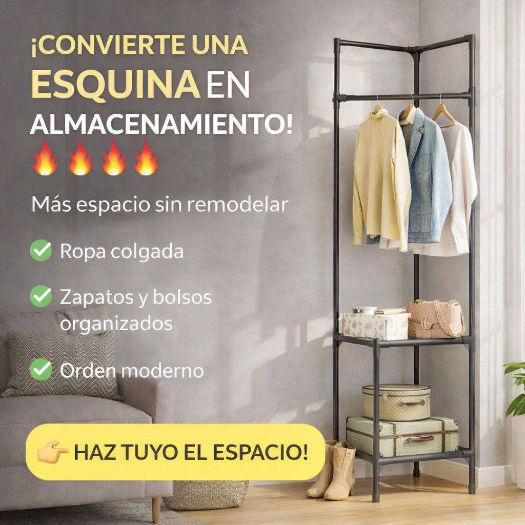 El Perchero Organizador Esquinero transforma una esquina olvidada en un espacio funcional, ordenado y visualmente atractivo.