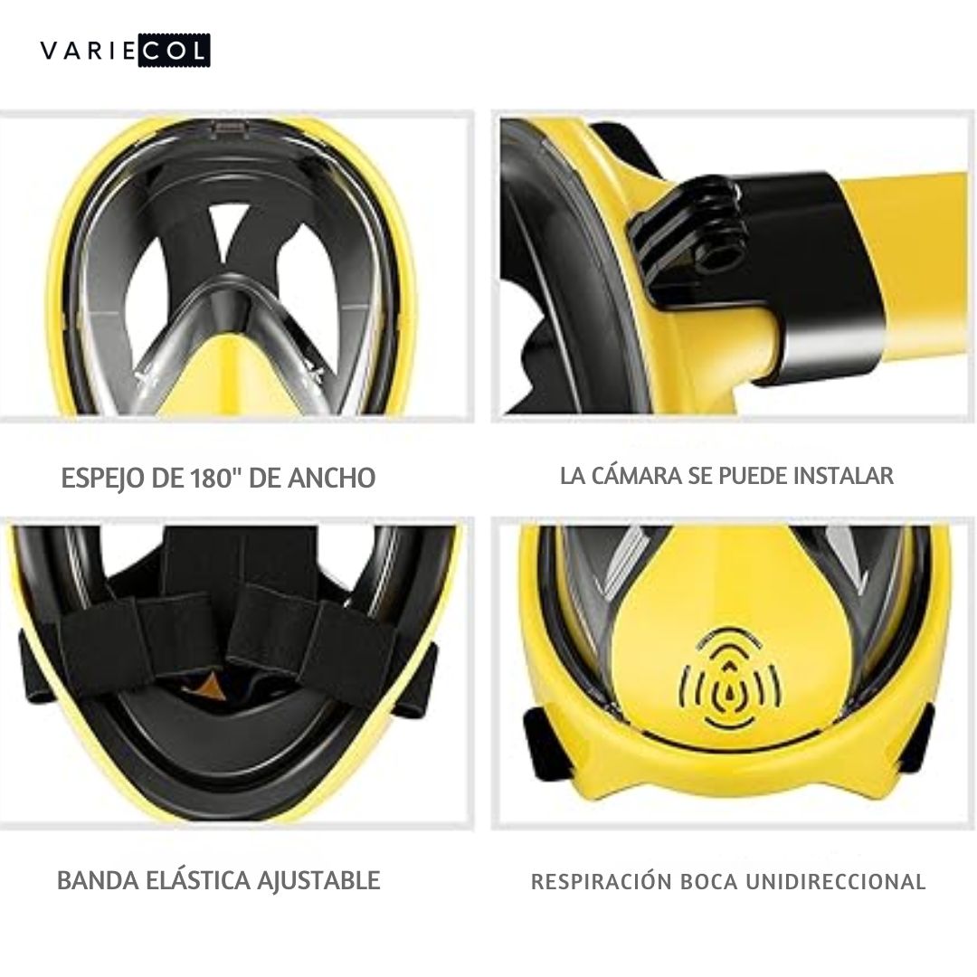 Experimenta una comodidad incomparable y una seguridad total bajo el agua gracias a nuestra máscara de esnórquel con sistema de respiración de seguridad.